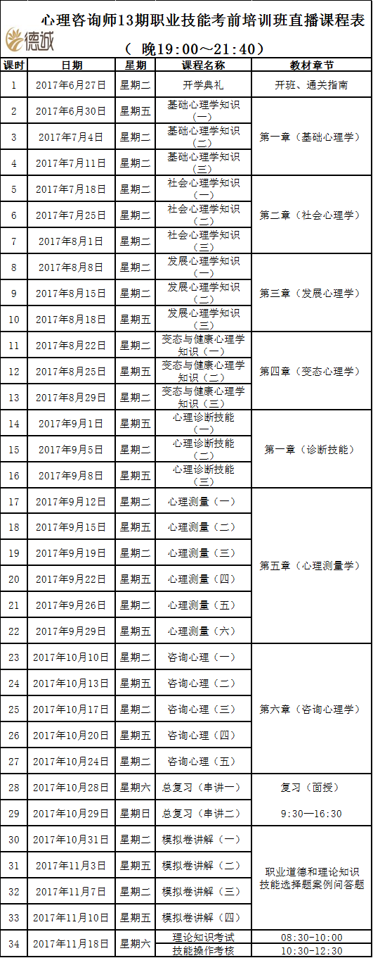 1、培訓時間:2017年6月27日開始上課,每周二、五上課(上課時間:19:00-21:40,課間休息10分鐘),共33次,每次2.5小時;復習集中2、面授兩天,地點另行通知。