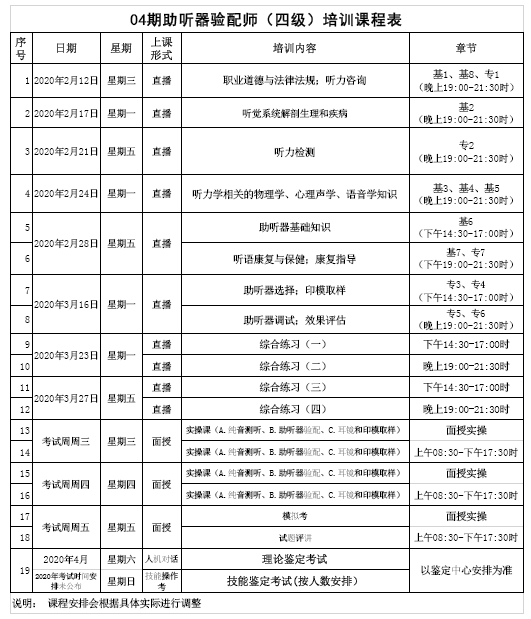 2、助聽(tīng)器驗(yàn)配師(四級(jí))培訓(xùn)班課程安排表