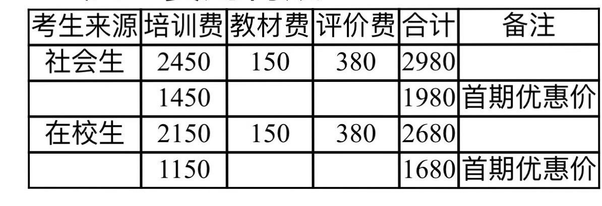 在校生2680元/人,首期優惠價1680元/人;