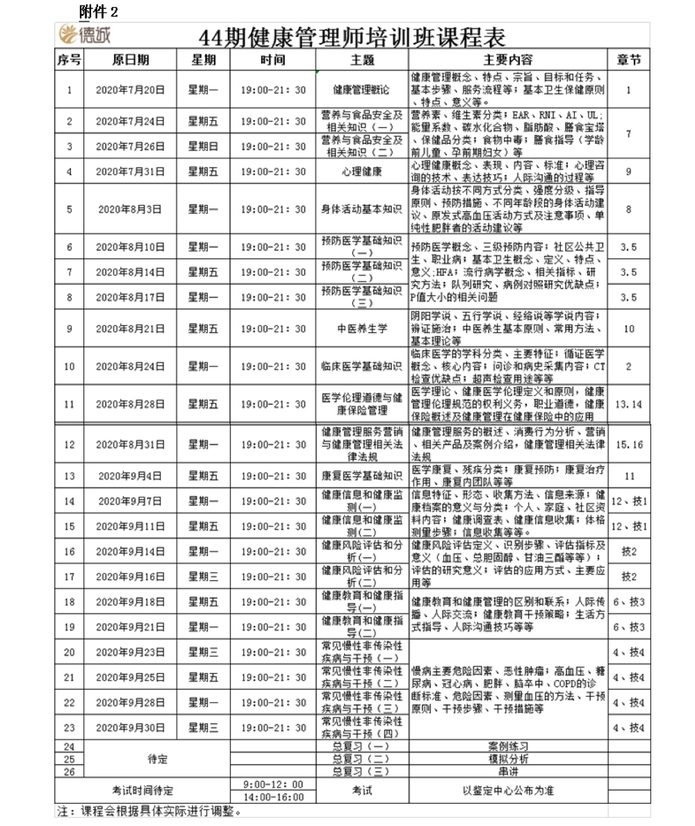 為了滿足健康管理行業快速發展以及健康管理人才培養的需要,廣東省德誠職業培訓學院結合國家衛健委人才交流服務中心的考試安排,擬開展第44期健康管理師職業資格考前培訓班。現將有關事項通知如下: