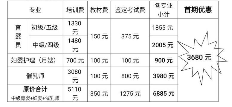 婦嬰護理(月嫂)、催乳、產后康復、育嬰員的職業道德教育、母嬰護理基礎知識、嬰幼兒生活照料、保健與護理、教育實施等相關知識與訓練。