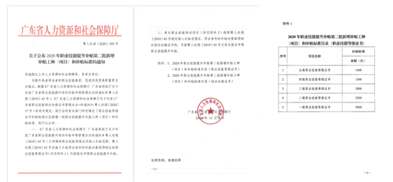 2. 截選《關(guān)于公布2020年職業(yè)技能提升補(bǔ)貼第二批新增補(bǔ)貼工種(項(xiàng)目)和補(bǔ)貼標(biāo)準(zhǔn)的通知》粵人社函[2020]295號(hào)文