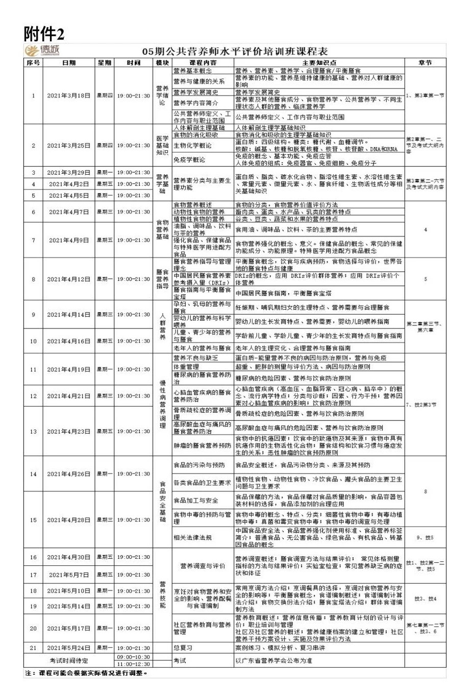 2、第05期公共營(yíng)養(yǎng)師水平評(píng)價(jià)培訓(xùn)班課程表