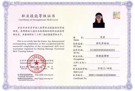 保健按摩師職業技能等級證書是由人力資源和社會保障部首批國家職業技能等級認定第三方評價機構北京市成人按摩職業技能培訓學校頒發(機構人社部備案號S0001,廣東省人社廳備案號44004020)。保健按摩師職業技能等級證書分別為五級/初級工、四級/中級工、三級/高級工、二級/技師、一級/高級技師;取得保健按摩師職業技能等級證書者可在人社部技能人才評價工作網(原國家職業資格工作網)http://jndj.osta.org.cn查詢信息,該證書全國通用。