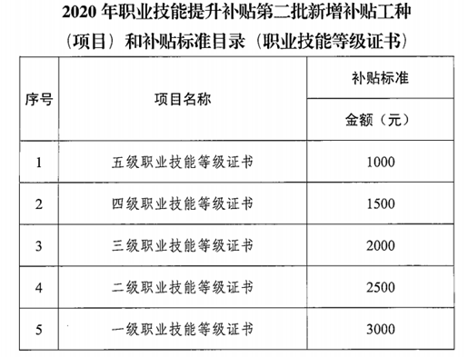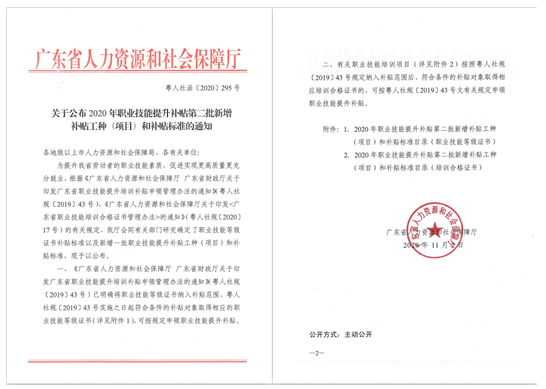 截選《關于公布2020年職業技能提升補貼第二批新增補貼工種(項目)和補貼標準的通知》粵人社函[2020]295號文