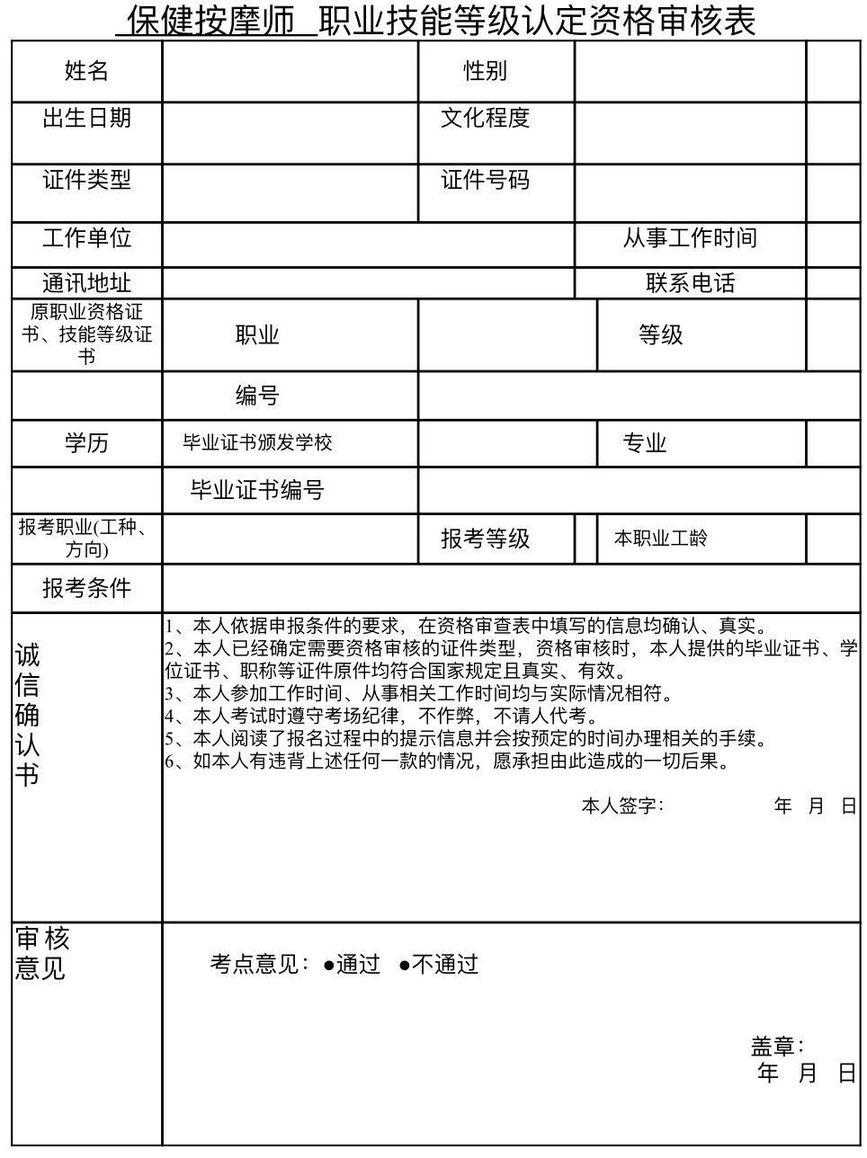1、保健按摩師職業技能等級認定資格審核表