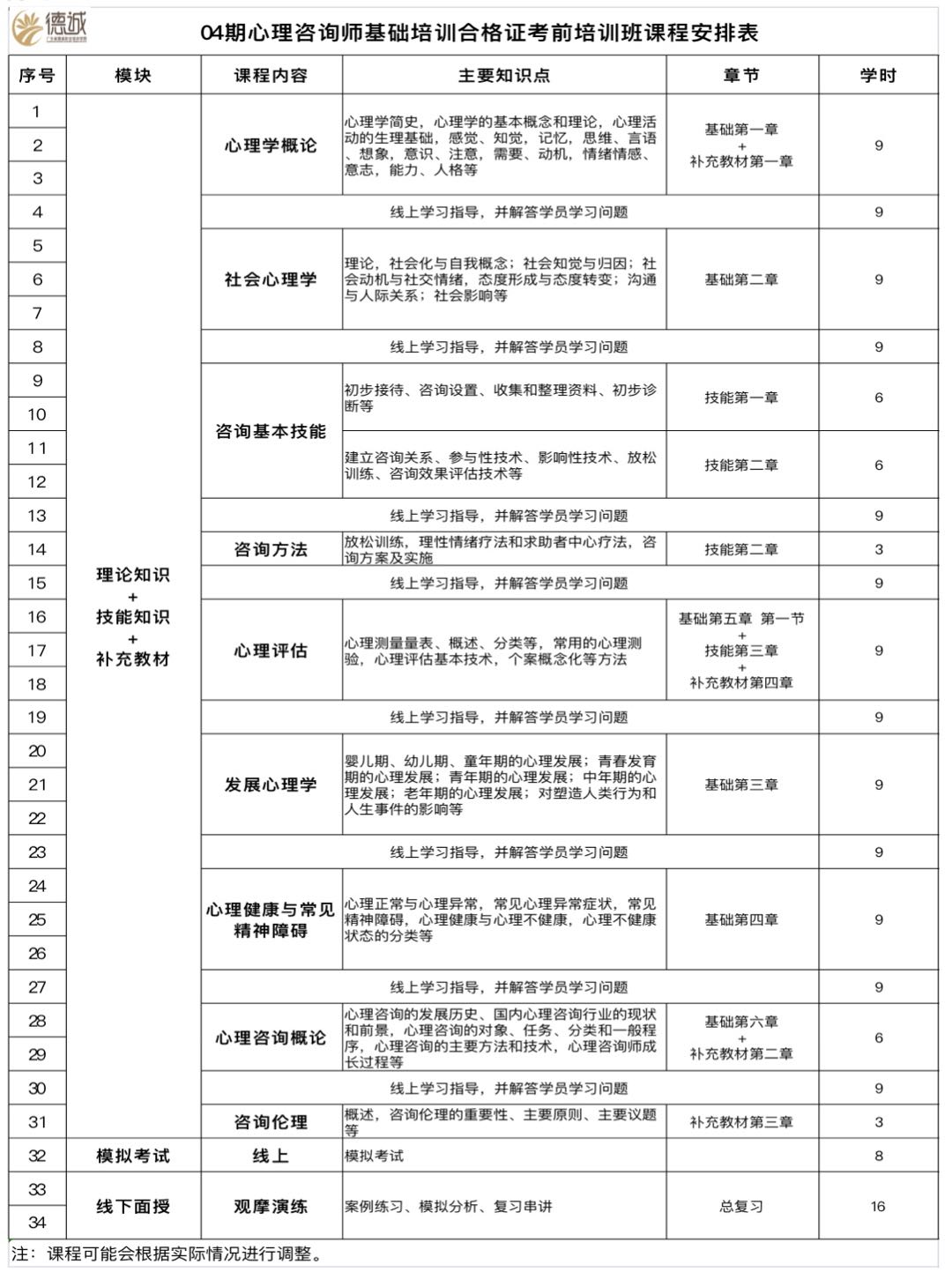 2、心理咨詢師基礎(chǔ)培訓(xùn)合格證考前培訓(xùn)班課程安排表