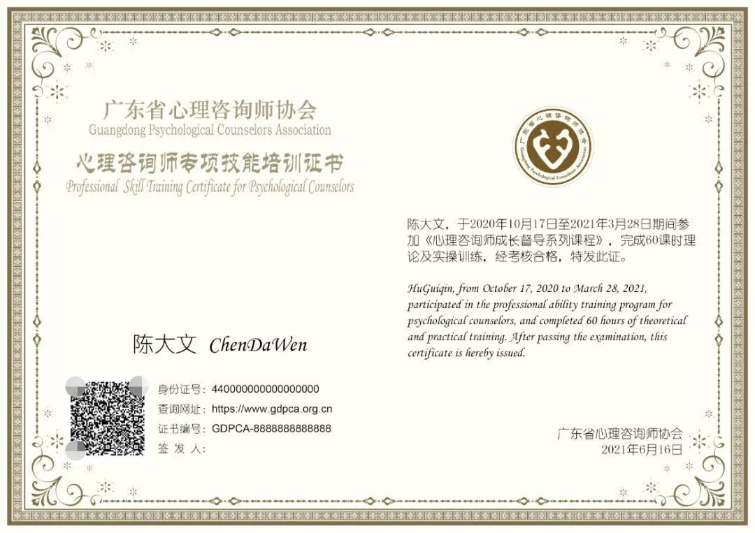 ● 學時:獲得廣東省心理咨詢師協會官方培訓、督導時數認證