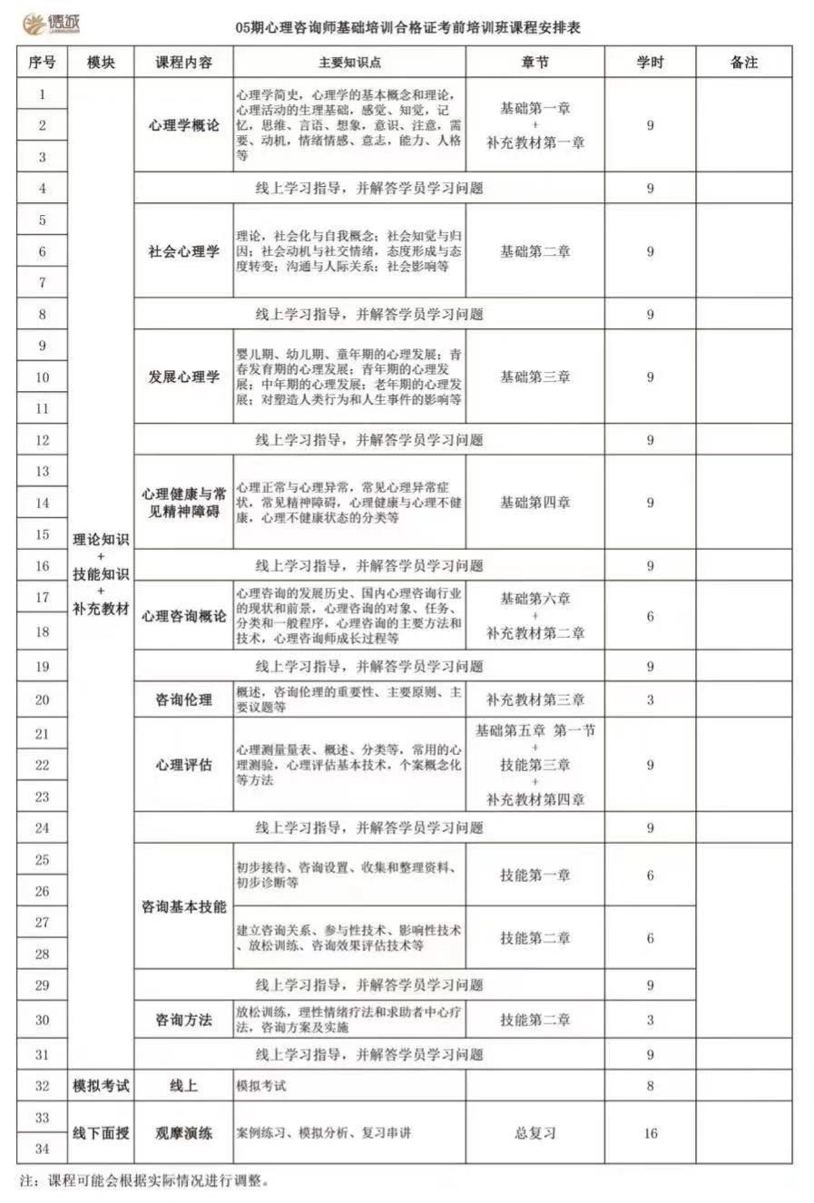 2、心理咨詢師基礎培訓合格證考前培訓班課程安排表