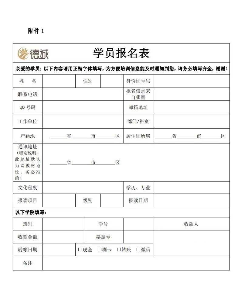 即日起至開班前。報名時交德誠學院《學員報名表》1 份(附件1,其他資料將在考試前通知繳交)并完成繳費即可。