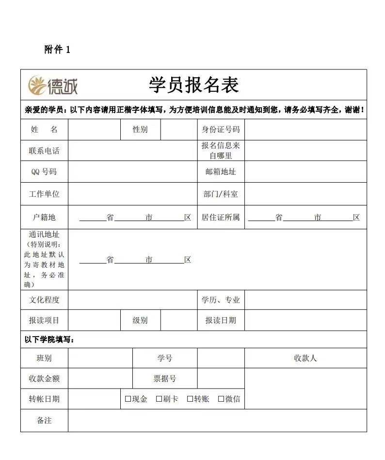 交德誠學(xué)院《學(xué)員報(bào)名表》1 份(附件1,其他資料將在考試前通知繳交)并完成繳費(fèi)。
