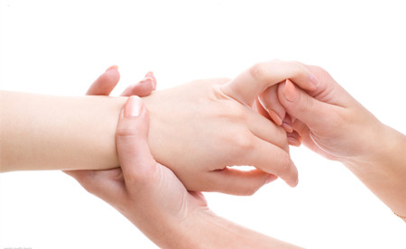 ?、谟杉绶逖厣现羌∧Φ街獠?、腕部,反復操作3至5分鐘。