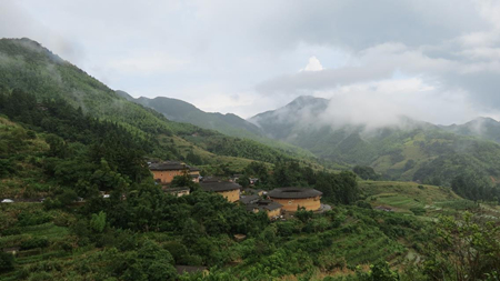 第三站的目的地是漳州的南靖土樓。第二天一早,我們就搭乘旅游專車前往漳州南靖。南靖土樓幾乎集合了我國土樓的所有特點,是非常值得一看的景觀。南靖的山區少了城市的喧囂,多了山林的寧靜,讓在城市中呆久了的人們覺得十分舒服,不自覺的開始喜歡上這樣一個寧靜祥和的地方。我們走過宛如四菜一湯的田螺坑土樓群,走進屹立了七百年的裕昌樓,似乎跟隨著空間的腳步走進了土樓的歷史。天上突然下起了一場大雨,阻礙了我們前進的腳步,但是雨后的美景卻深深吸引著我們的眼球。山林間飄起的煙霧使土樓更具神秘感,吸引著我們前去探索。