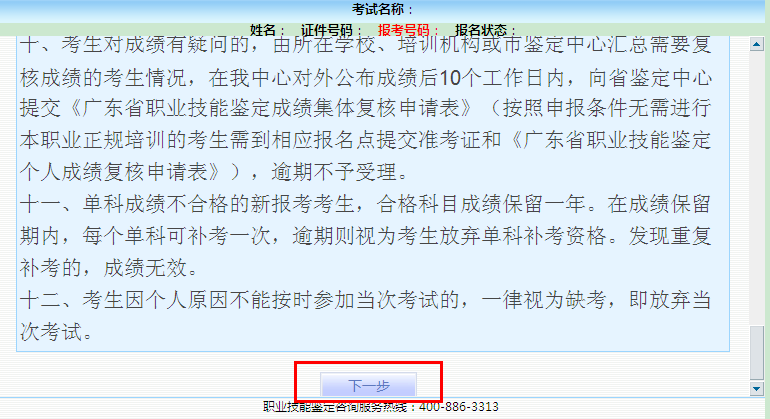 第十一步:填寫工作履歷后點擊 保存,然后點擊 下一步,進入頁面如下: