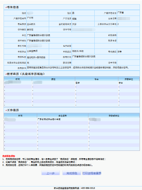 核對無誤后,點擊完成報名,隨后打印資格審查表,并簽名確認。