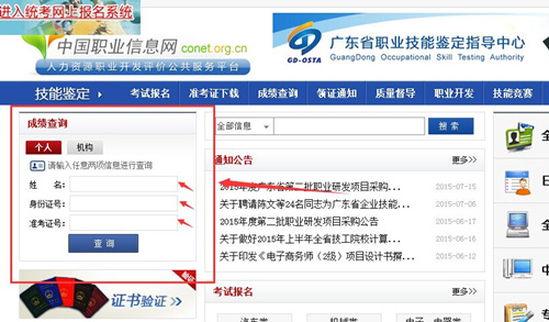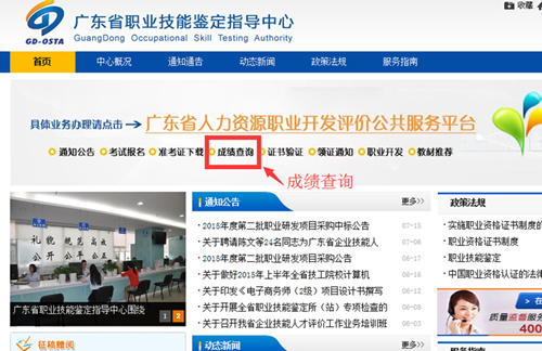 2015年下半年各職業資格全國統一鑒定的成績已公布在廣東省職業技能鑒定中心網頁上(http://www.conet.org.cn/skill/index.html),請學員們根據以下流程進行相關成績查閱:(溫馨提示:點擊我院微信公眾號頁面右下方的實用功能--成績查詢也可進行成績查詢哦!)