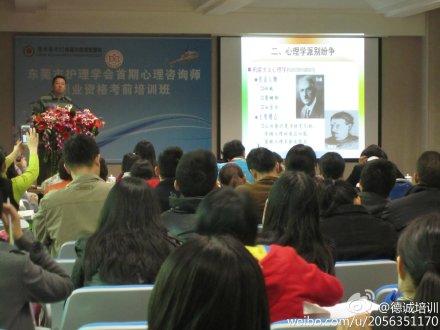 廣東省德誠職業培訓學院與東莞市護理學會共同合作舉辦,首期國家心理咨詢師職業資格培訓班在東莞市博愛醫院開班。