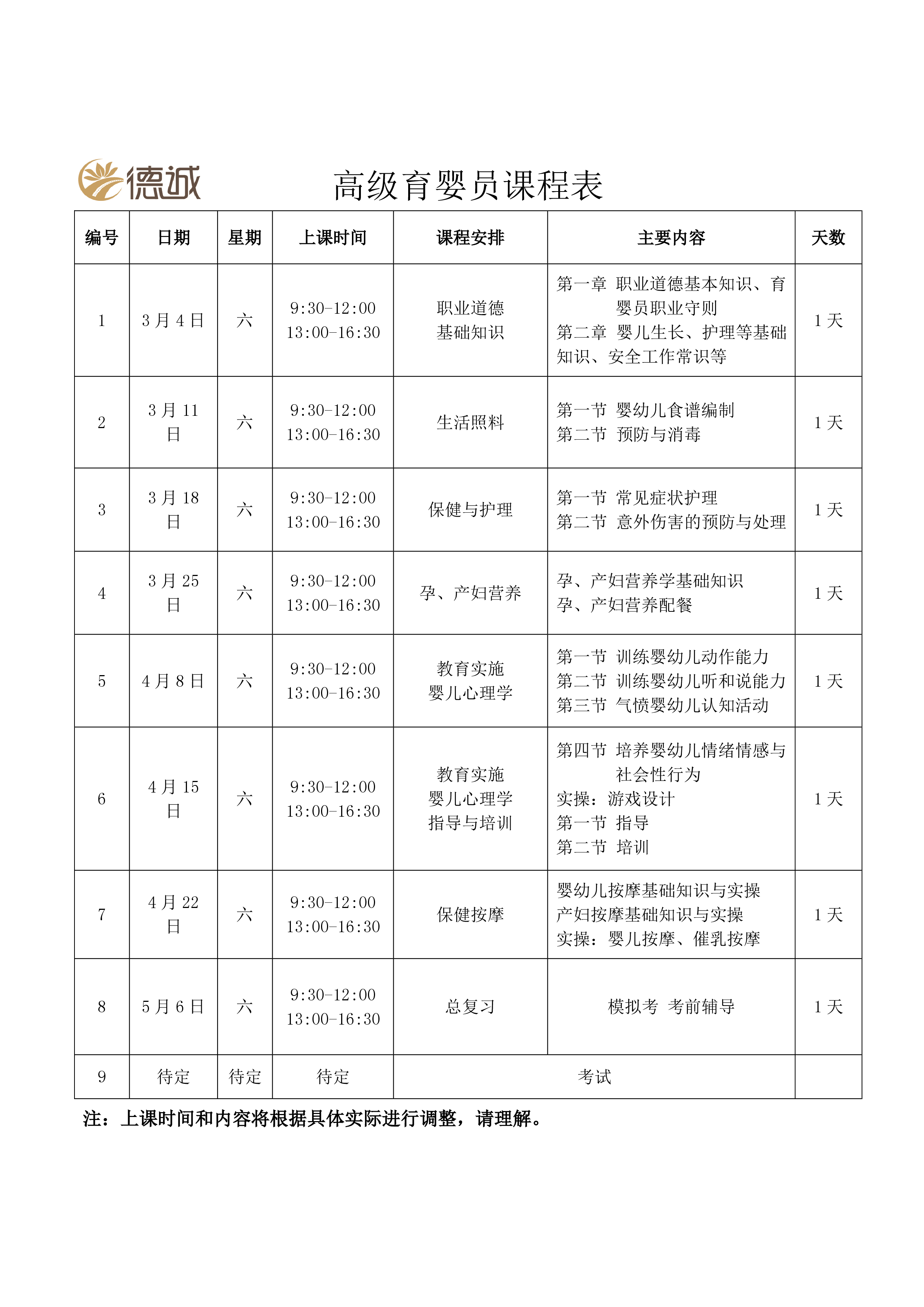 培訓時間:2017年3月4日至2017年5月6日,逢周六全天上課。