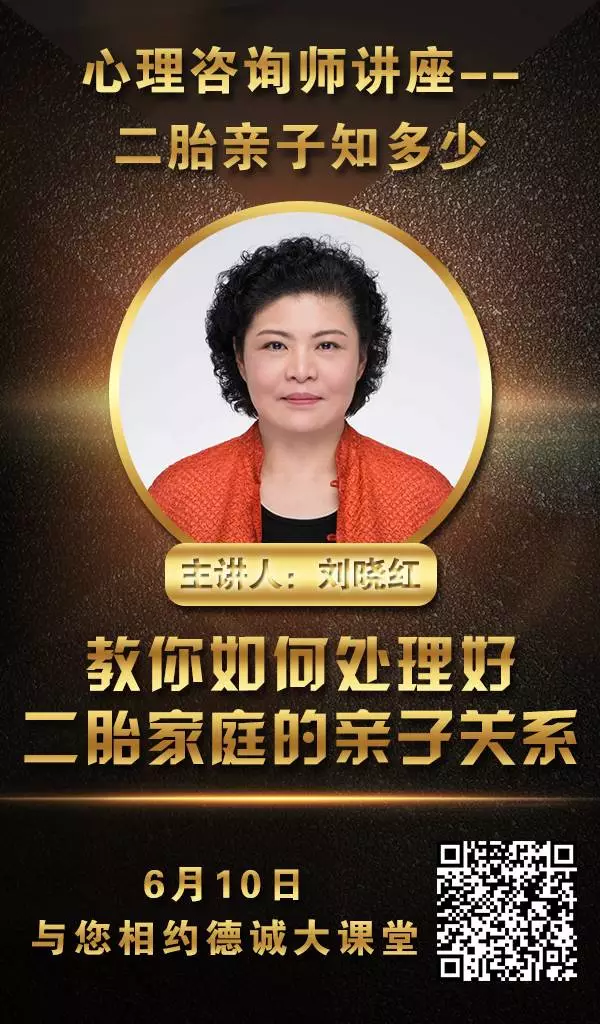 廣東省德誠職業(yè)培訓(xùn)學(xué)院特邀廣州市心理咨詢師協(xié)會專家--劉曉紅老師與大家分享如何處理好二胎家庭的親子關(guān)系,詳細(xì)內(nèi)容可掃描下圖二維碼查閱。
