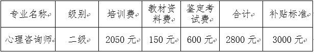 根據粵財社【2014】128號文,對參加培訓并通過考試獲得心理咨詢師國家職業資格證書者,按級別分別發放技能晉升培訓補貼3000元。申領補貼條件: