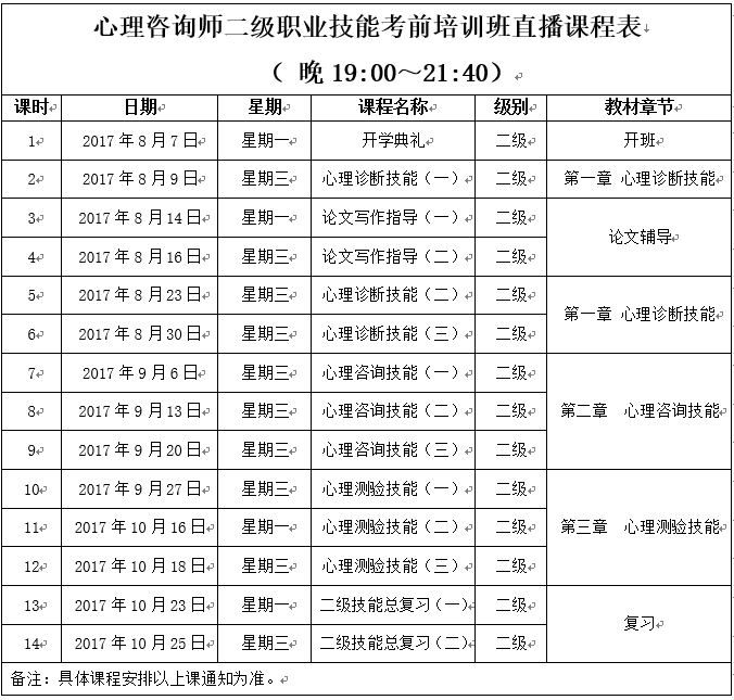 我院根據《意見》指導,擬舉辦二級心理咨詢師國家職業資格考前培訓班,現將有關事項通知如下:
