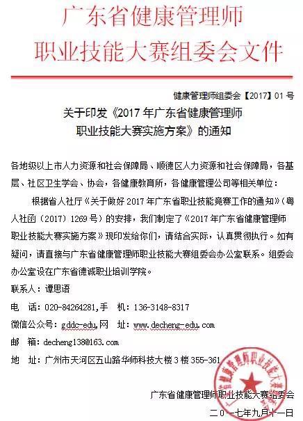 號外!號外!2017年廣東省健康管理師職業(yè)技能大賽開始接受報名了