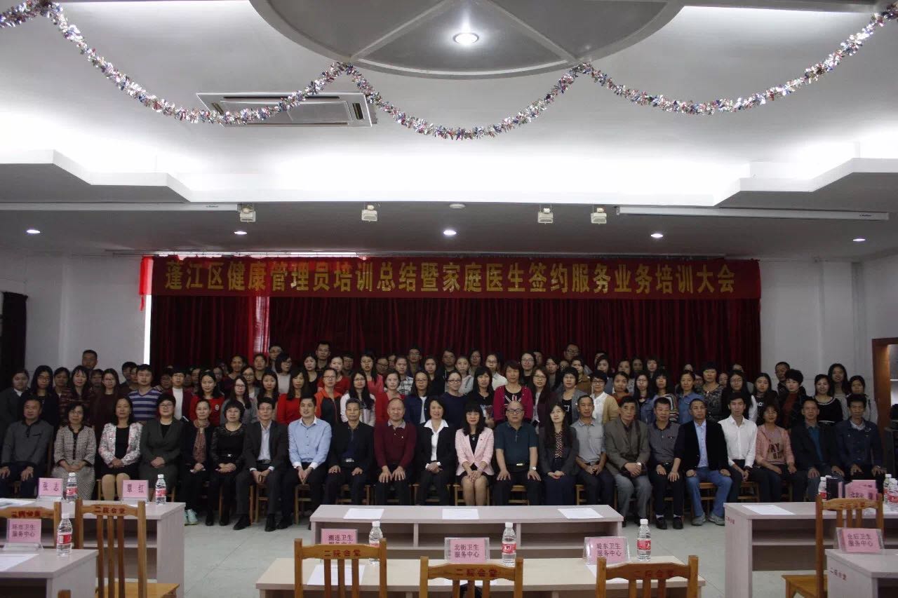 11月8日上午,蓬江區健康管理員培訓總結暨家庭醫生簽約服務業務培訓大會在市第二人民醫院五樓會堂召開,市衛生計生局局長許彩華,廣州醫科大學公共衛生學院院長王家驥教授,市衛生計生局副局長曾子冉、以及市衛生計生局有關科室負責人、區衛生計生局主要領導、廣東省德誠職業培訓學院負責人,區衛生計生系統有關領導及學員等150人參加大會。