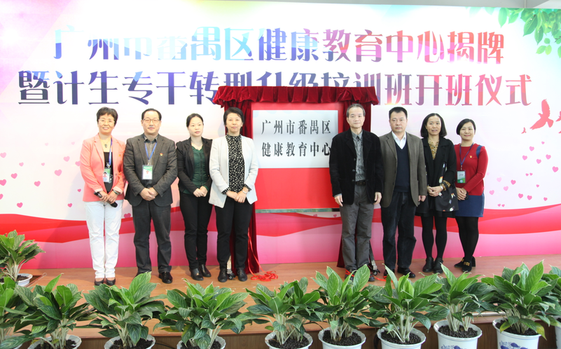 12月29日上午,番禺區健康教育中心揭牌儀式暨由我院承辦的番禺計生專干轉型健康管理員培訓班開班儀式在番禺區衛生技術人員繼續教育中心隆重舉行。