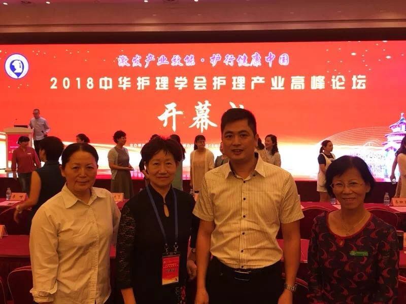 2018年9月7日,應中華護理學會產業工作委員會的邀請,作為全國培訓機構的代表——廣東省德誠職業培訓學院,由許綿群院長率團赴北京出席中華護理學會產業高峰論壇,許綿群院長作為論壇嘉賓專家就“激發產業效能,護行健康中國”為主題上臺發言。