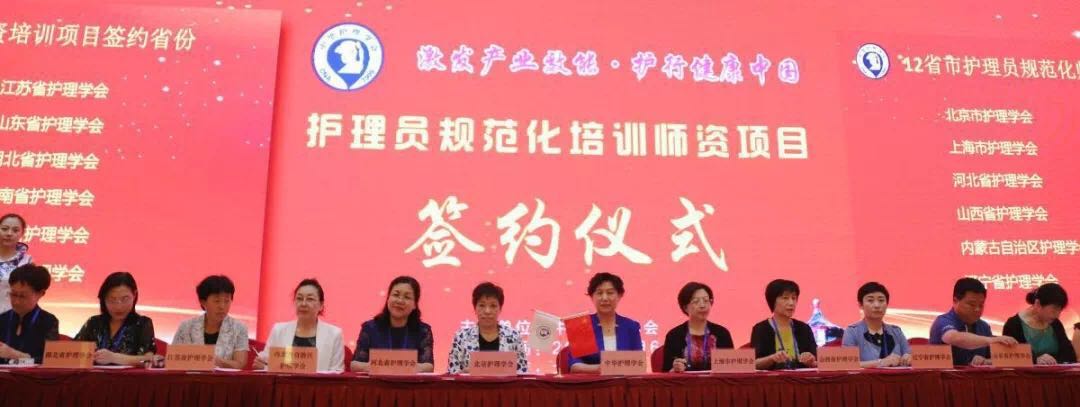 論壇上,在教育部中國現代教育研修中心楊捷主任、中華護理學會副理事長皮紅英、李崢、丁炎明、張素秋、胡斌春、李映蘭、秘書長應嵐、副秘書長鄭一寧、馬慧共同見證中,由中華護理學會副理事長、產業工作委員會主任委員張利巖代表中華護理學會與北京、上海、河北、山西、內蒙古、遼寧、江蘇、山東、湖北、湖南、廣東、四川等12個省市的護理學會進行了合作簽約,開啟了護理產業新業態的篇章。
