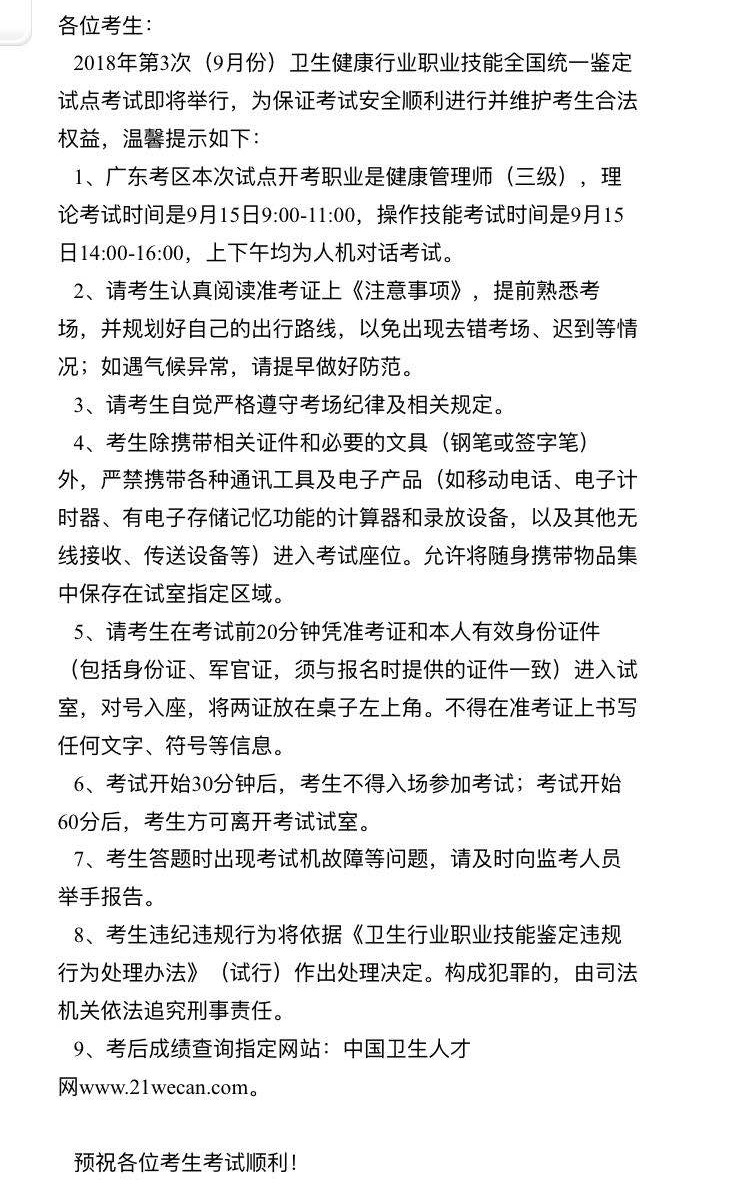 上新 |緊急通知!@23期-26期的健康管理師考生:關(guān)于參加9月15日《健康管理師》職業(yè)技能全國統(tǒng)一鑒定的通知