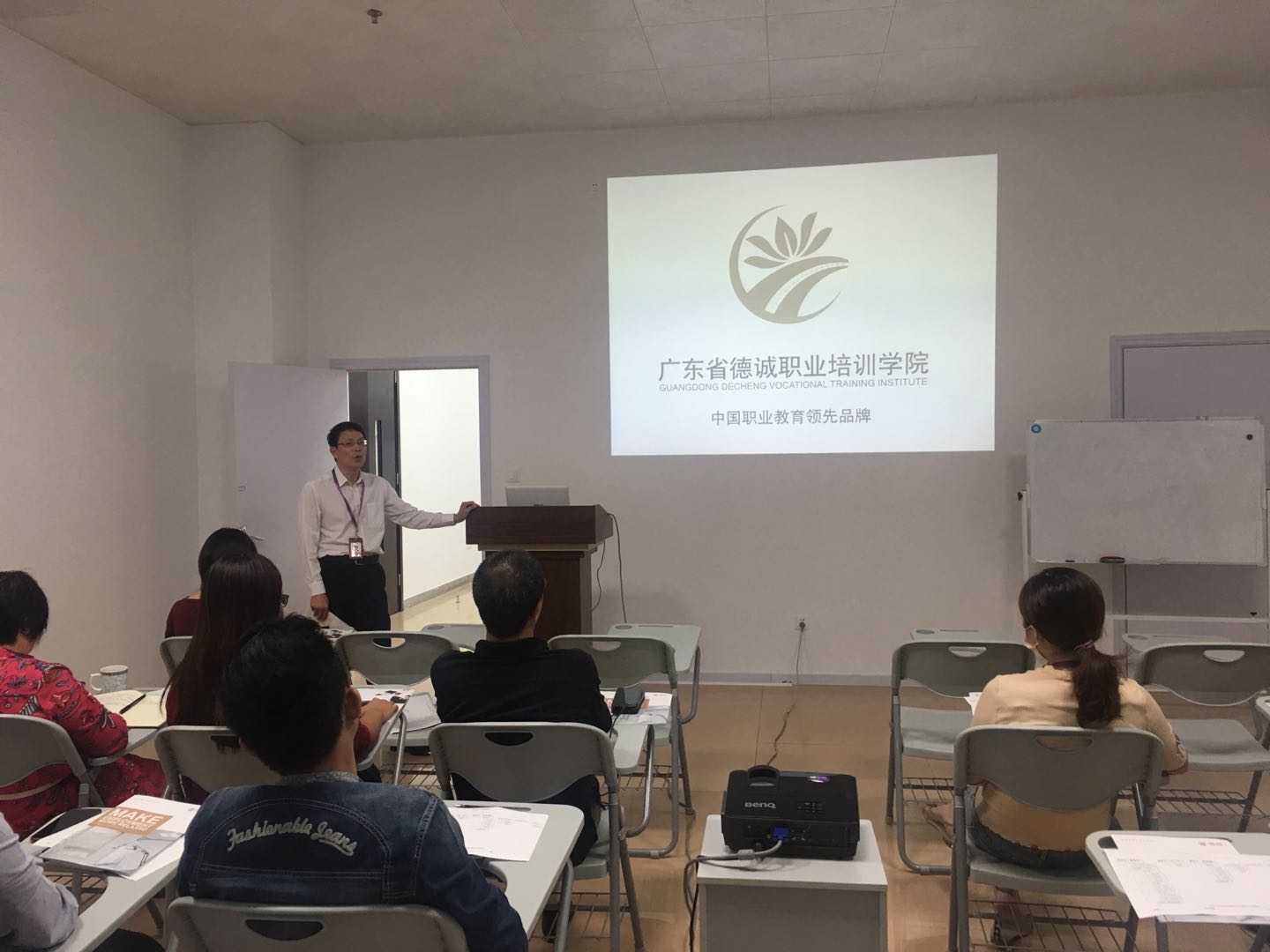 10月12日早上,德誠(chéng)學(xué)院全體人員聚集在培訓(xùn)1課室進(jìn)行培訓(xùn),培訓(xùn)開始由魏院長(zhǎng)上臺(tái)作發(fā)言,一開場(chǎng),魏院長(zhǎng)向大家致辭并表示歡迎、簡(jiǎn)述培訓(xùn)流程等一系列事項(xiàng),緩解了培訓(xùn)會(huì)場(chǎng)緊張的氛圍,并同時(shí)強(qiáng)調(diào)了企業(yè)文化對(duì)一個(gè)人,對(duì)一個(gè)企業(yè)的重要性。