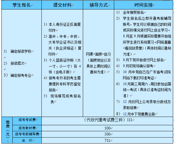 4、通過輔導并參加成考,學生未能錄取。如學生還要繼續(xù)報考,可免繳下一次的考前輔導費。