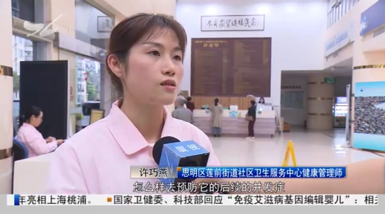 思明區(qū)蓮前街道社區(qū)衛(wèi)生服務中心健康管理師 許巧燕:得了慢性病以后,怎么樣去預防它的后續(xù)的并發(fā)癥,這時候我們對他的一個管理就顯得非常重要,這時候我們就會花更多的時間,然后想更多的辦法讓居民,比如說自我管理上,然后怎么去接受它,怎么去落實它。