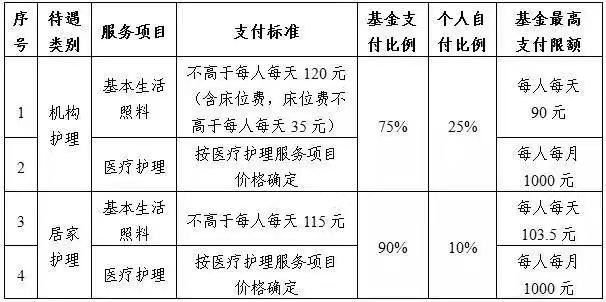 2.具體的長期護理險待遇支付標準詳情如下表:
