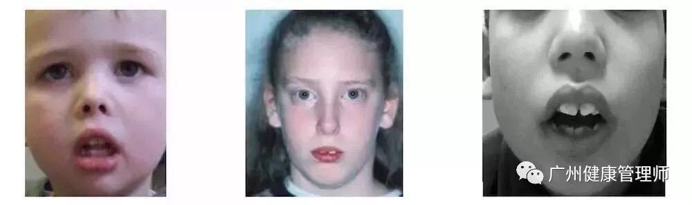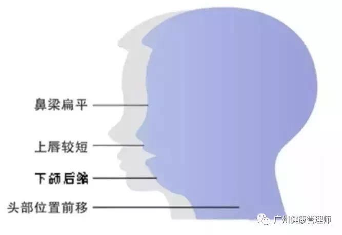 面容:上唇較短,開唇露齒,有時嘴唇有外翻傾向,下頜后縮。