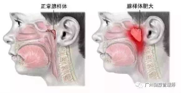 1)腺樣體、扁桃體肥大。腺樣體、扁桃體為咽部的淋巴組織,發炎時腫大,引起氣道狹窄。腺樣體位于鼻腔最后面,生理情況下,5歲體積達到最大,7歲開始萎縮。