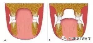 A:正常舌位置和后牙關系。B:口呼吸時舌位置較低,伴有后牙反頜。