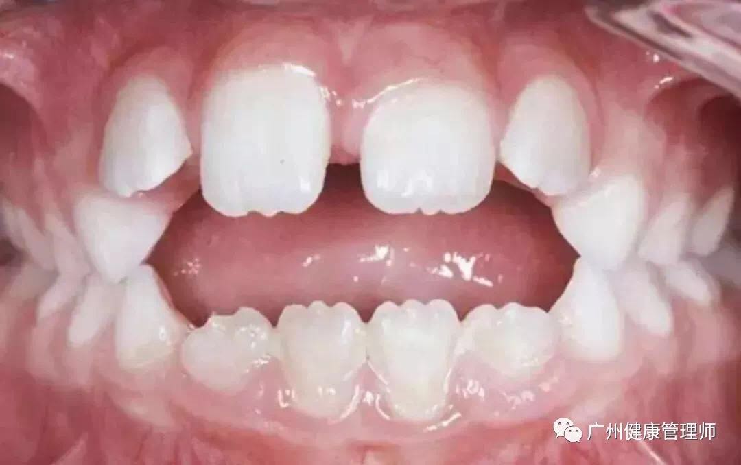 1 、牙列畸形。引起牙列畸形的重要原因是舌的位置錯誤!正常情況下,舌體靜息時(閉口時)的正常位置是輕觸上顎,水平面上來看,上顎內有舌肌向外推,外有頰?。娌考∪猓┫騼葦D,在力的平衡中正常發育。