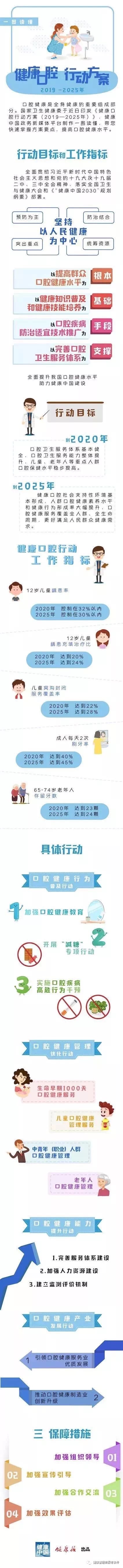 國家衛生健康委辦公廳近日印發《健康口腔行動方案(2019-2025年)》,速速戳圖了解吧~~~
