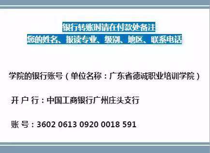 (請在付款附言處備注您的姓名、報讀專業、地區、電話號碼)