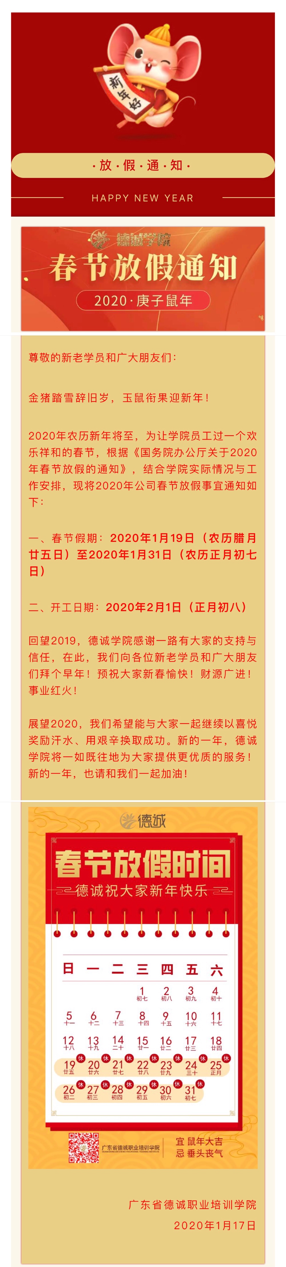 春節(jié)放假通知來(lái)源:德誠(chéng)教育 發(fā)布時(shí)間:2020-01-17