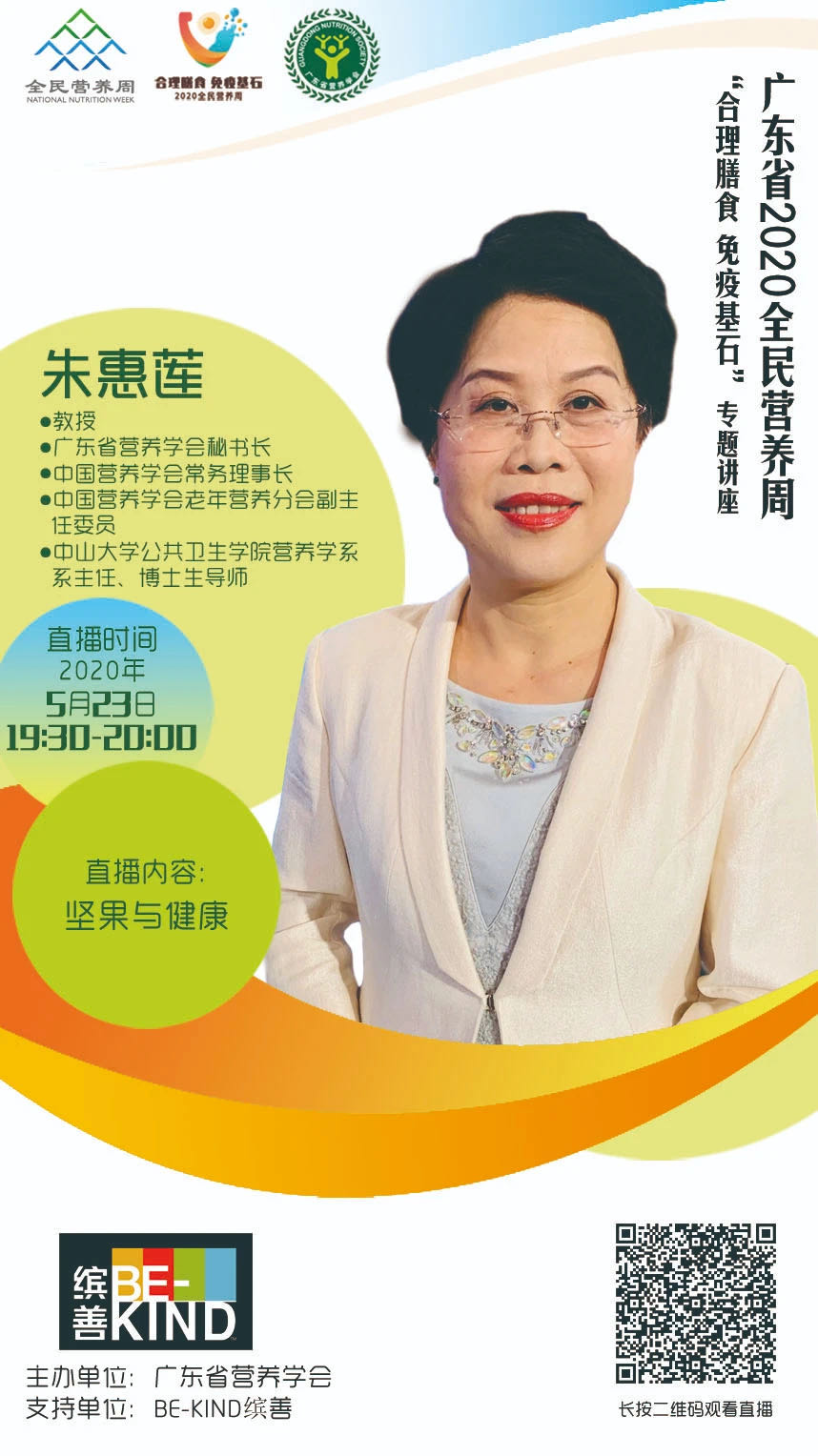 想了解更多堅(jiān)果小知識(shí),別錯(cuò)過5月23日晚上19:30-20:00,廣東省營養(yǎng)學(xué)會(huì)秘書長、中山大學(xué)公共衛(wèi)生學(xué)院朱惠蓮教授為大家?guī)淼摹秷?jiān)果與健康》專題講座!