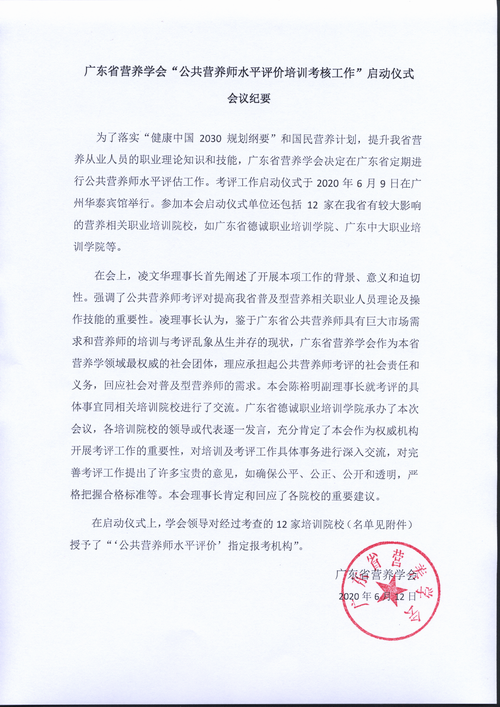 附件:廣東省營(yíng)養(yǎng)學(xué)會(huì)“公共營(yíng)養(yǎng)師水平評(píng)價(jià)培訓(xùn)考核工作”啟動(dòng)儀式會(huì)議紀(jì)要