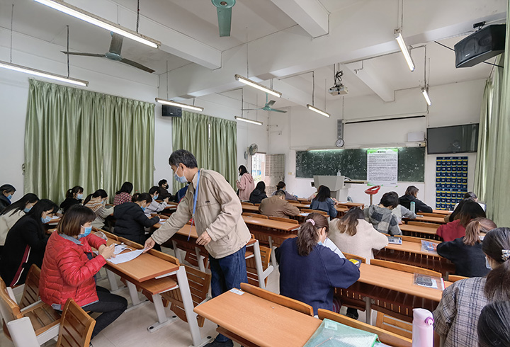 在鑒定考試開考前,根據廣東省營養學會公共營養師水平評價工作委員會的指示要求及相關規定,負責本次考試的工作人員制定了詳細的工作計劃,在考前通知考生并給予考場路線圖示指引、布置考場及在校園內醒目位置設置考場指引。確保本次鑒定考試能順利舉行,同時,針對疫情及考場可能出現突發事件,工作組也制定了相應的實施方案和應急預案。
