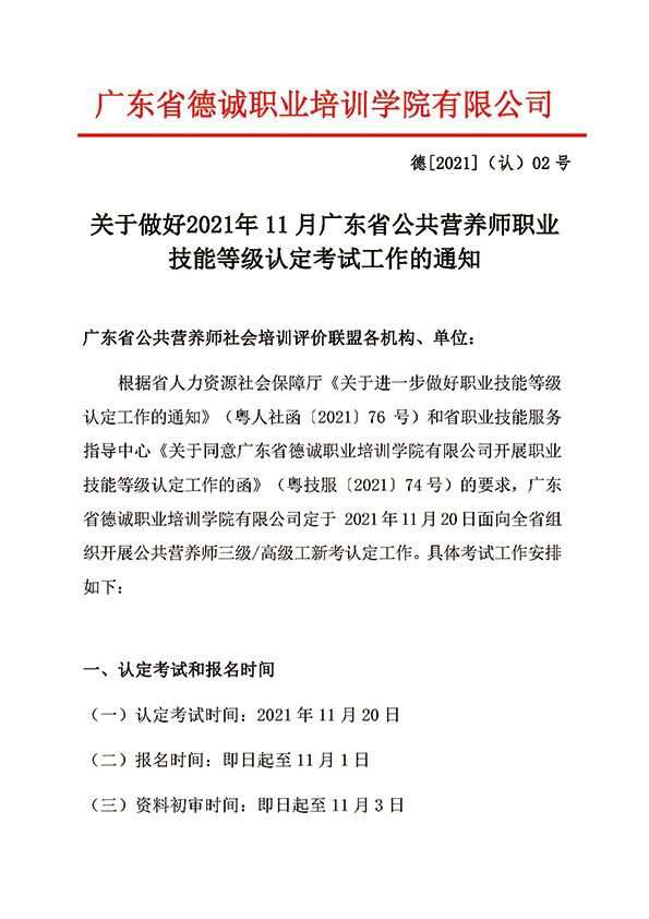 關(guān)于做好 2021 年廣東省公共營養(yǎng)師職業(yè)技能等級認(rèn)定考試工作的通知