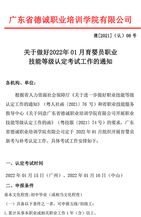 關(guān)于做好 2022 年01月育嬰員職業(yè)技能等級(jí)認(rèn)定考試工作的通知
