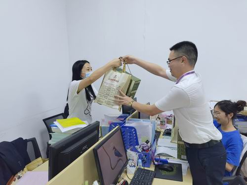 一份份精美的禮物,送到了每一位員工的手中,大家的喜悅之情溢于言表。