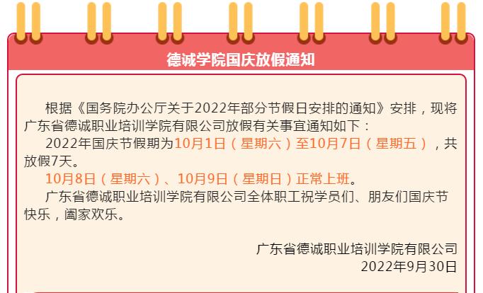 廣東省德誠職業(yè)培訓學院有限公司國慶放假通知