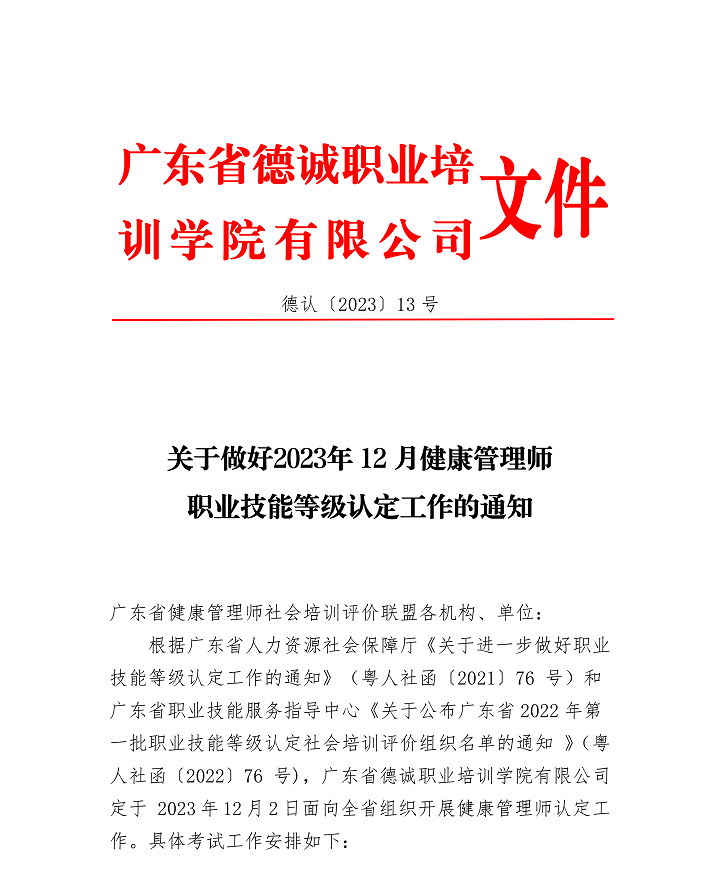 關(guān)于做好2023年12月健康管理師職業(yè)技能等級認(rèn)定工作的通知